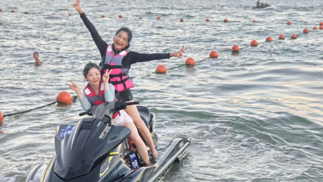 下午,大家转战海滨沙滩,投入到蔚蓝大海的怀抱中。踩水、嬉浪、沙滩游戏……欢声笑语随着海浪此起彼伏。还体验了刺激的摩托快艇,在波光粼粼的海面上感受速度与激情。阳光、沙滩、海浪,还有一张张灿烂的笑脸,构成了这个秋天难忘的画面。
