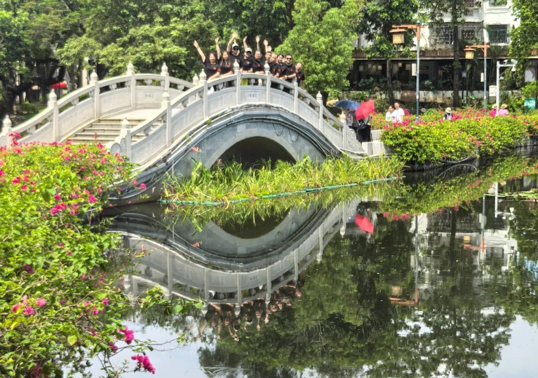 后一天,全体员工身着整齐的“93阅兵服”,展现出昂扬的精神风貌。早餐后集体退房,前往被誉为“岭南明珠”的惠州西湖。